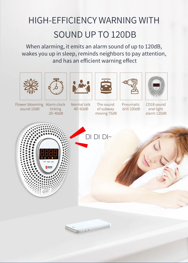 | Alarm display | display "100PPM" , prompt "Di" three times |