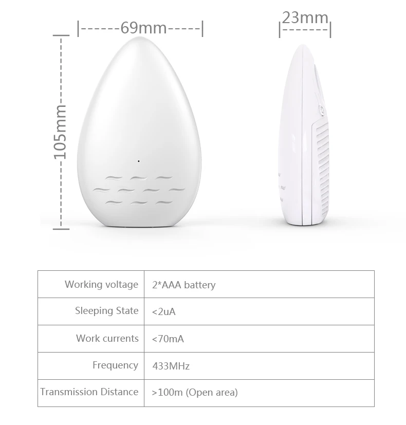 Flooding detection alarm, wireless wifi connection, when the water level is higher than the set, the water will drown the detector's detection feet, the detector will immediately alarm, and push the wireless wifi network signal to the mobile phone bound to the mobile phone, indicating that the water level exceeds the standard, please take appropriate measures in time.