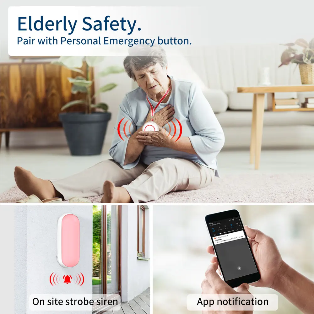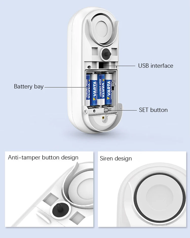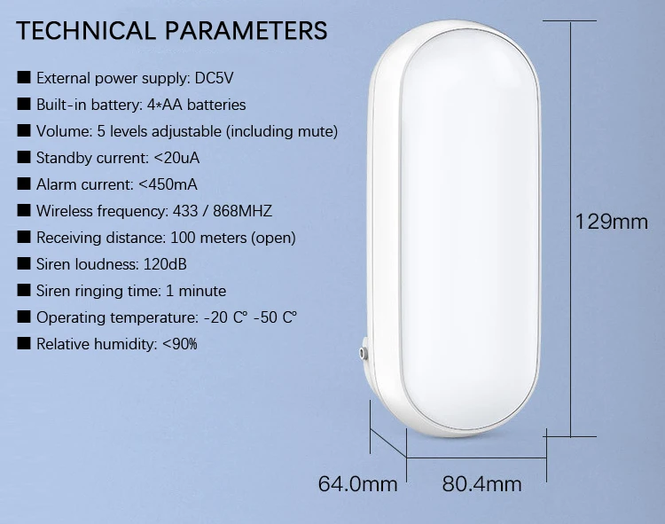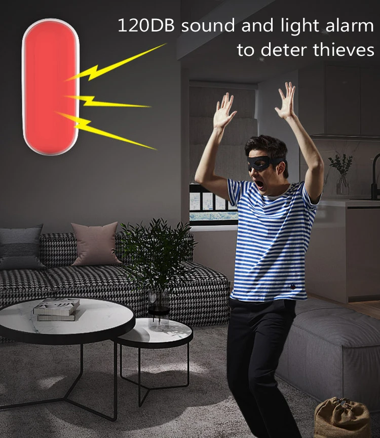- 120dB loud alarm sound, dazzling red light